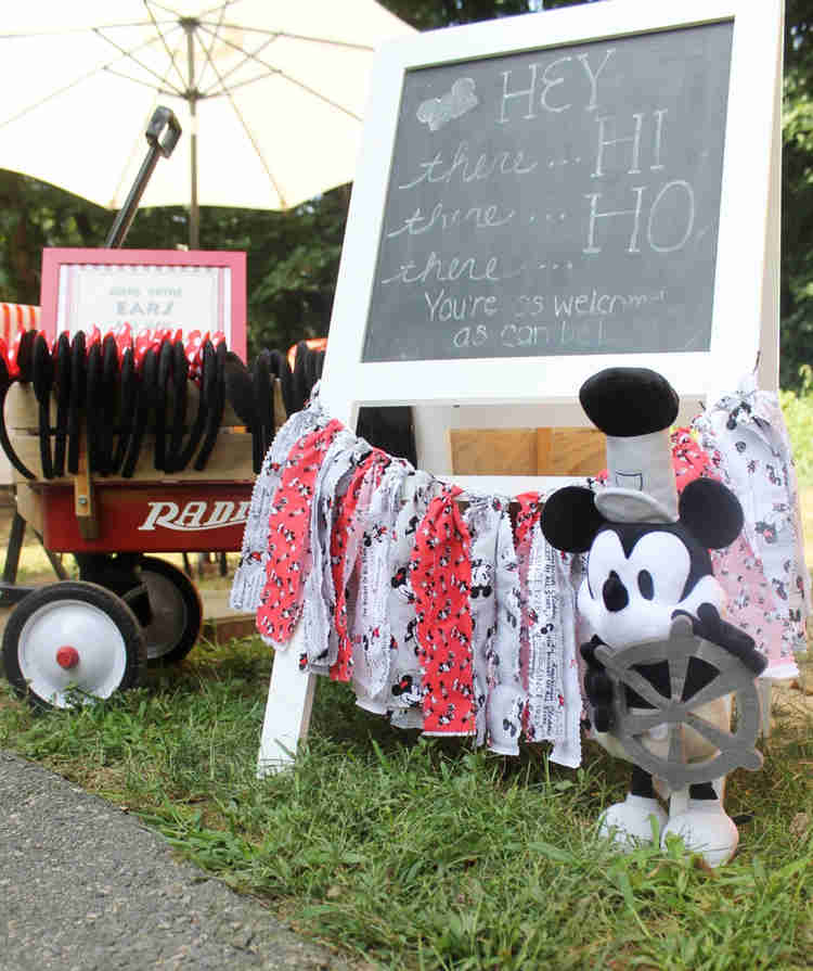 A vintage Steamboat Willie Mickey greeted guests and invited them to grab a pair of either Mickey or Minnie Mouse ears!